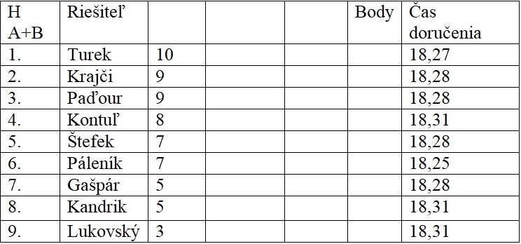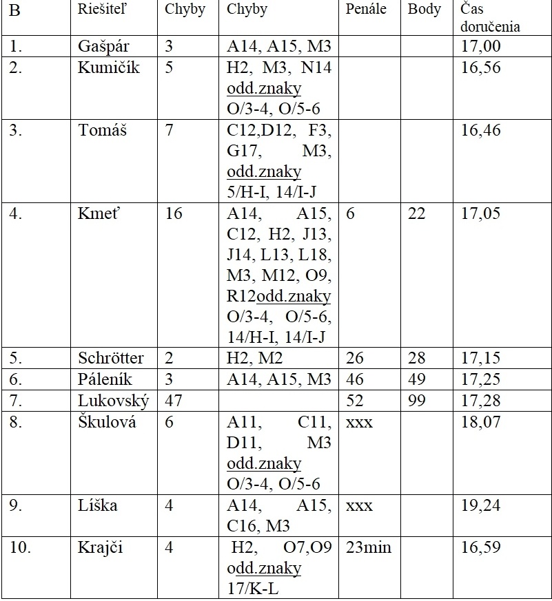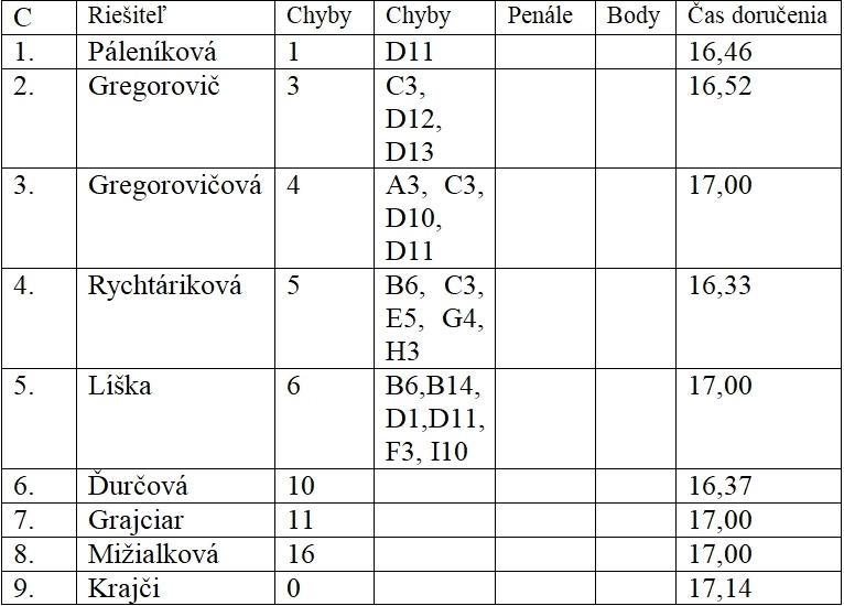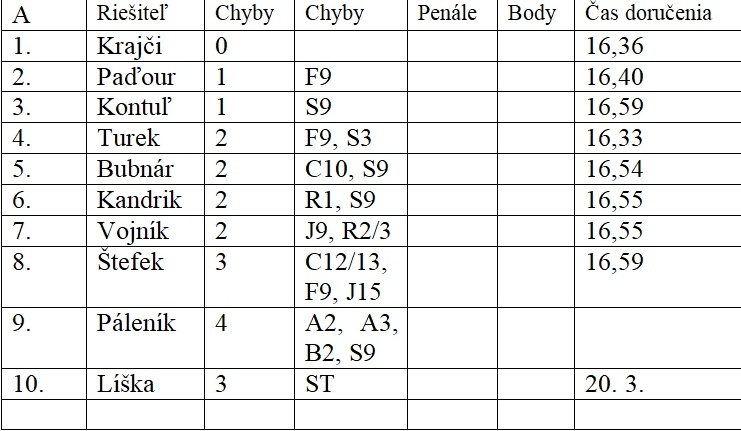 Predkladám výsledky Jozefovskej online súťaže z 19. 3. 2022. Zdá sa, že technické problémy boli teraz akosi častejšie a tak sú vo výsledkoch otázniky. I ja som mal výpadok internetu. Vyššia moc. Vo výsledkovej listine sú uvedení všetci, ktorí riešenie poslali. V kategórii A sme uznávali S4 vydal a podal x nevykope a nepokope. Nemá to vplyv na poradie. Výraz nadal by bol rovnaký ako meno špan. tenistu, bol by teda 2x v krížovke. A nemá žiadnu príbuznosť s podaním či vydaním. V kategórii C sa podarilo rozbiť pelotón bezchybných riešení zaradením slabikovky.